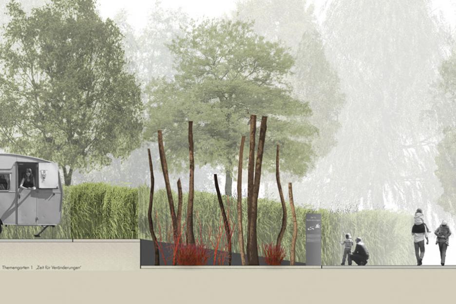Der Westen Schmalkaldens ist räumlich heterogen, zeigt kaum fassende Strukturen und ist zudem im Umbruch begriffen. Die neuen Freiräume dort werden mit ihren gestalterischen Merkmalen zu einem zusammenhängenden Parkgewebe verbunden. Mit den neuen Anlagen wird ein stützendes Gerüst mit verbindenden landschaftlichen Merkmalen und einer gemeinsamen Identität geschafften. Bei aller Unterschiedlichkeit der Orte werden dabei einheitliche Strukturelemente zum Gestaltungsprinzip. Dabei weisen sie sehr unterschiedliche Stimmungen und Programme auf. Der lineare Erzählstrang der „Zeitreise“ kommentiert diese als Themen der Stadtgesellschaft durch alle Zeiten.