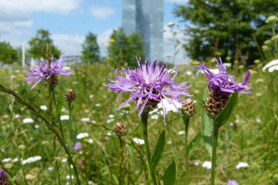 Stadtnatur im Mix mit Spiel und Sport prägt den nur 4 Hektar großen Frankfurter Hafenpark. Die Eröffnung des ersten Bauabschnitts mit dem beliebten Skatepark feierte im Juli zehnjähriges Jubiläum. Die schön eingewachsenen Wildwiesen sind uns eine große Freude und ebenso ein Grund zum Feiern – auch dank der engagierten Pflege durch das Grünflächenamt Frankfurt.