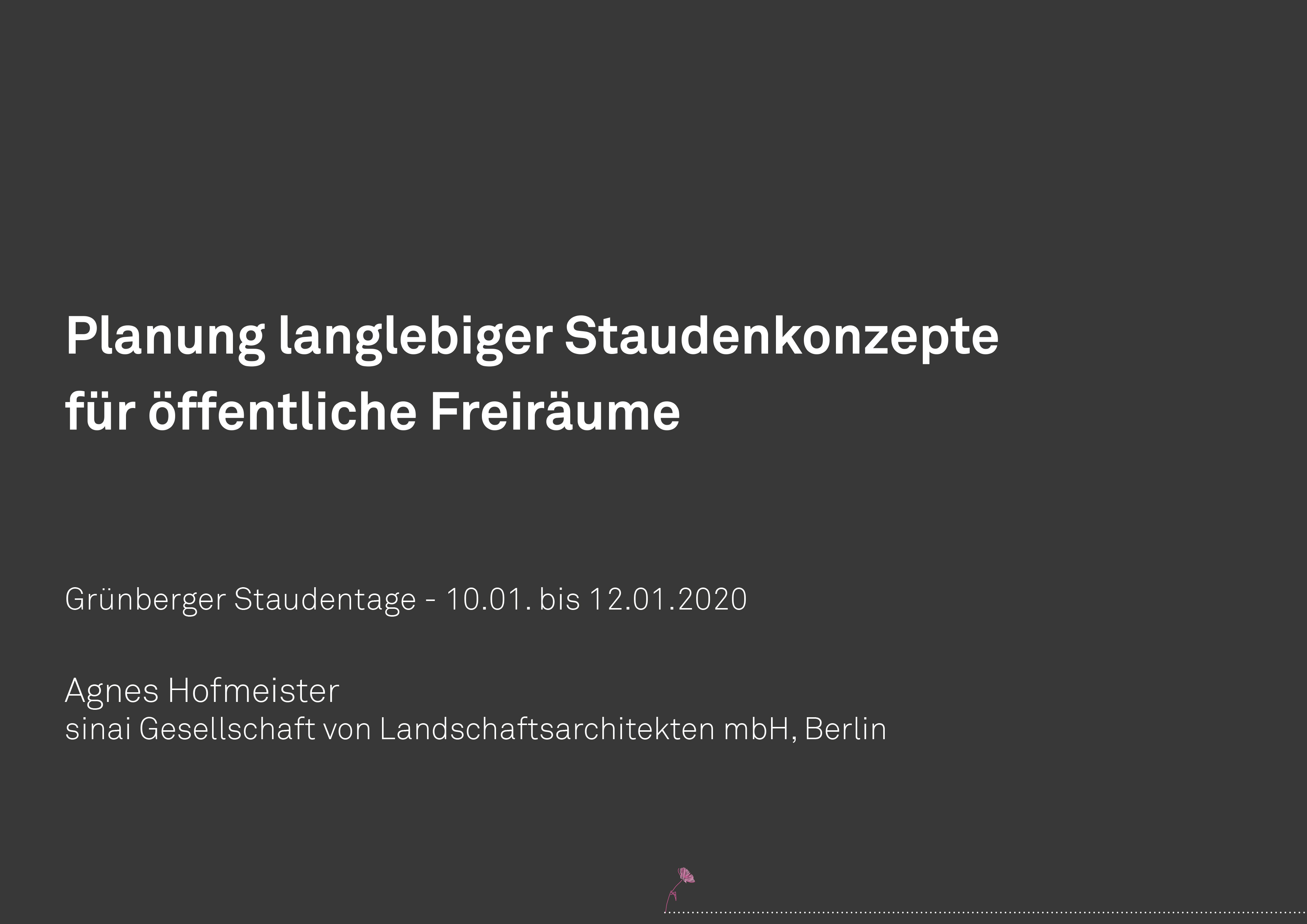 Im Fokus stehen die langlebigen Staudenkonzepte der BUGA Heilbronn 2019 und der Landesgartenschau Wittstock 2019: Vorgestellt werden die unterschiedlichen Standorte sowie die daran angepassten Pflanzungen.