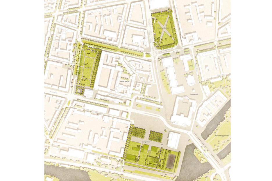 Mit ihrem robusten, modifizierten Layout ist die Plantage dabei offen für alle künftigen Möglichkeiten: Als geschichtserinnernde Lesehilfe im Kontext des Bestands, oder als Teil eines stimmigen Ensembles im Fall der künftigen Rekonstruktion der Garnisonskirche.