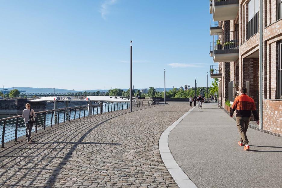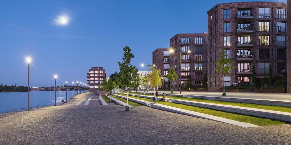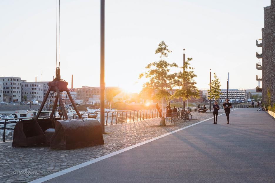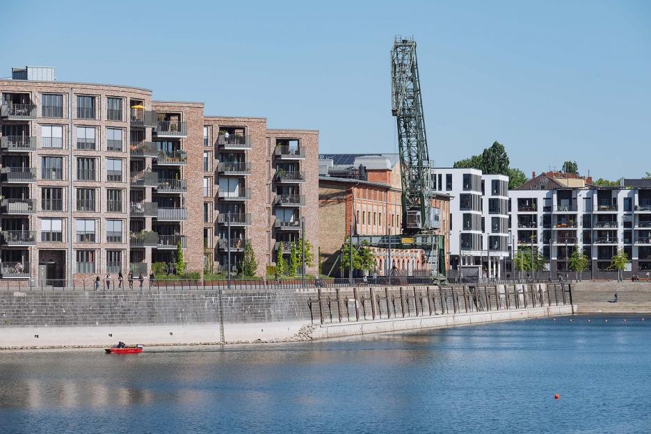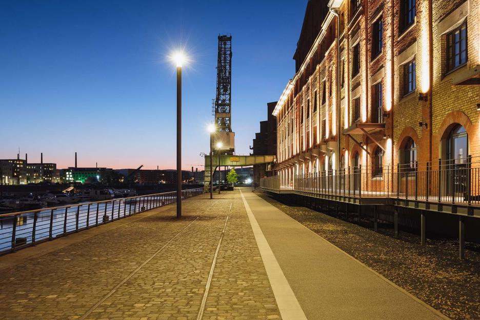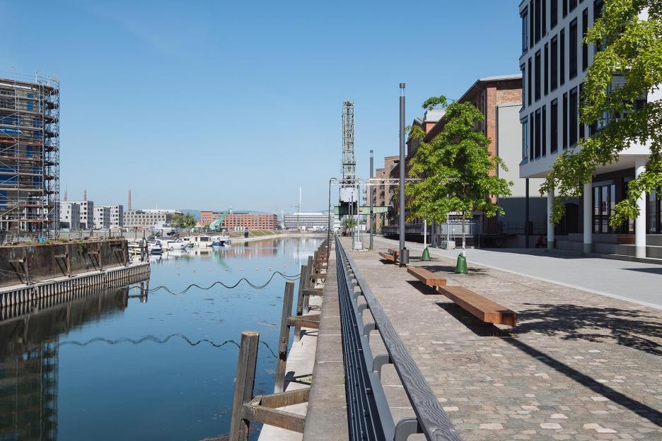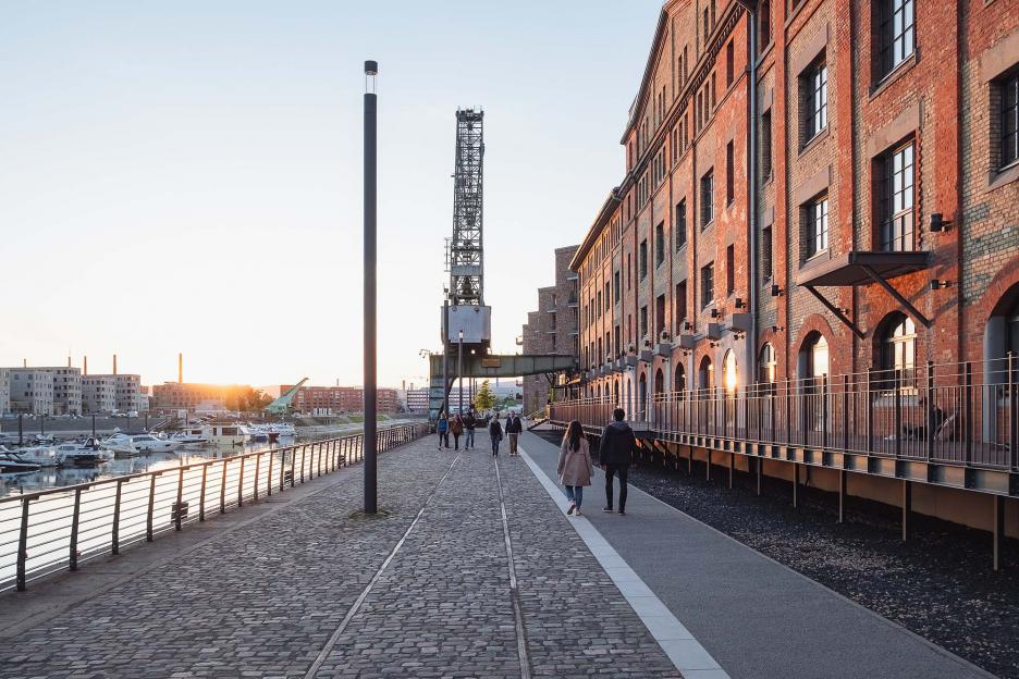 Ein kräftiger Rahmen historischer Handwerklichkeit und die Rauigkeit eines Flusshafens bilden den Rahmen für die Entwicklung der modernen Stadtquartiere am Zollhafen.