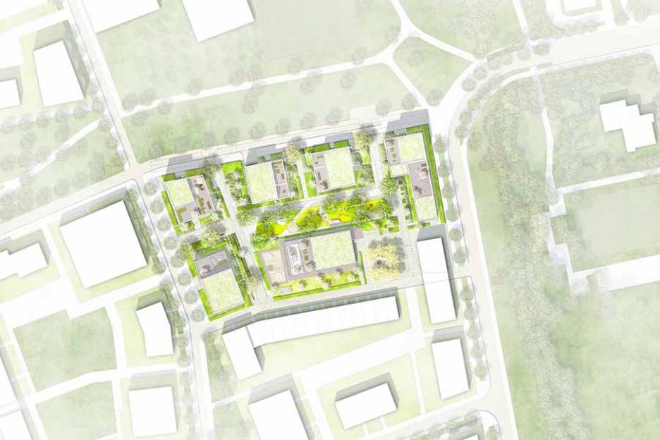 Ein wohnliches Arboretum inklusive Kindertagesstätte für den neuen Stadtteil Freiham im Münchner Westen.