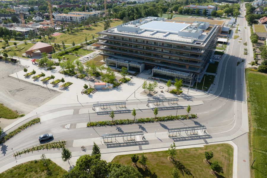Flankiert von Wohnbebauung und öffentlichen Bauten wie einem neuen Rathaus, Schulen und Kitas, wird mit dem Park eine neue Ortsmitte entstehen. So können die bisher getrennten Gemeindeteile Kirchheim und Heimstetten zusammenwachsen.