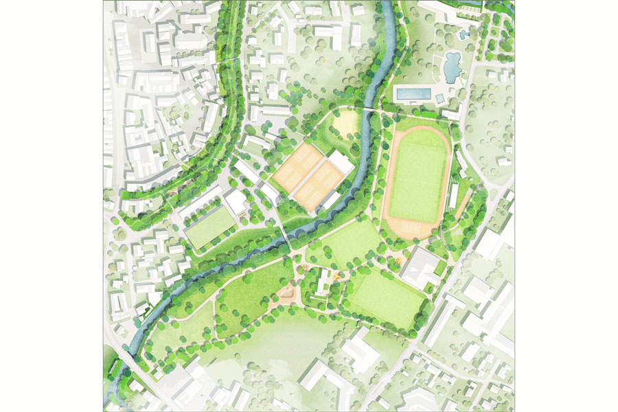 Über alte und neue Brückenschläge entfaltet sich ein Wegenetz für Fußgänger und Radfahrer, das die Auenlandschaft in vielfältiger Weise erlebbar macht und die Stadtteile zusammenbringt. Neue Parks entstehen rechts der Paar, die sich ihren Begabungen entsprechend zu kontrastierenden Sphären entwickeln.
