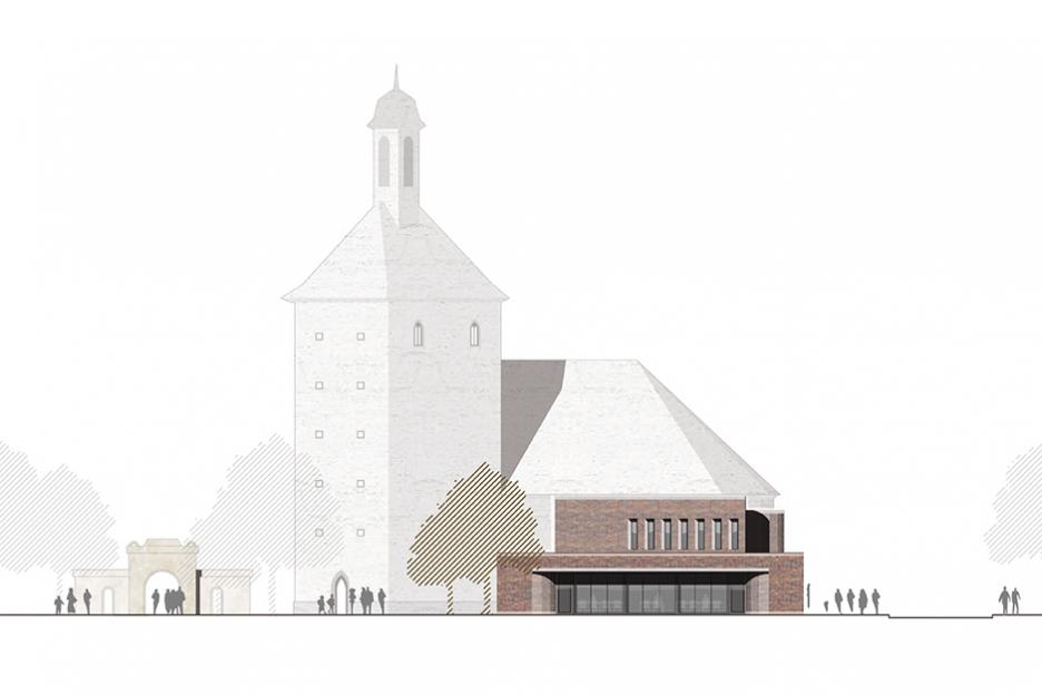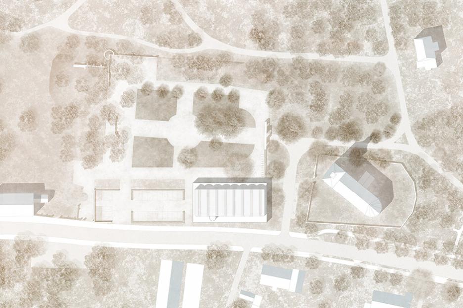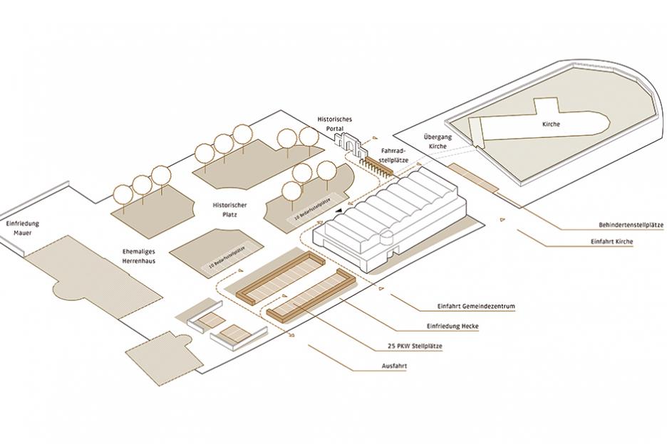 Seit Mitte der 90ziger Jahre wächst die Gemeinde Kleinmachnow stetig, mit ihr die evangelische Kirchengemeinde, beider Ursprung ist der Gutshof mit Dorfkirche - das Alte Dorf. Der Neubau eines Gemeindehauses bietet nicht nur die Chance die entstandene Raumnot der Gemeinde zu beheben, sondern auch den historischen Standort wieder intensiver in die Nutzungsüberlegungen einzubeziehen. Für die Identität der "Waldgemeinde" ist das verlorene Ensemble von hoher ideeller Bedeutung. Mit dem Neubau beginnt sich ein Vorstellungsraum für die Topografie des Ortes zu eröffnen. Die Elemente des Freiraums geben dem neuen Haus die "Koordinaten" um es in das Ensemble einordnen zu können. Die Möglichkeit weiterer baulicher Ergänzungen wird vorgezeichnet.