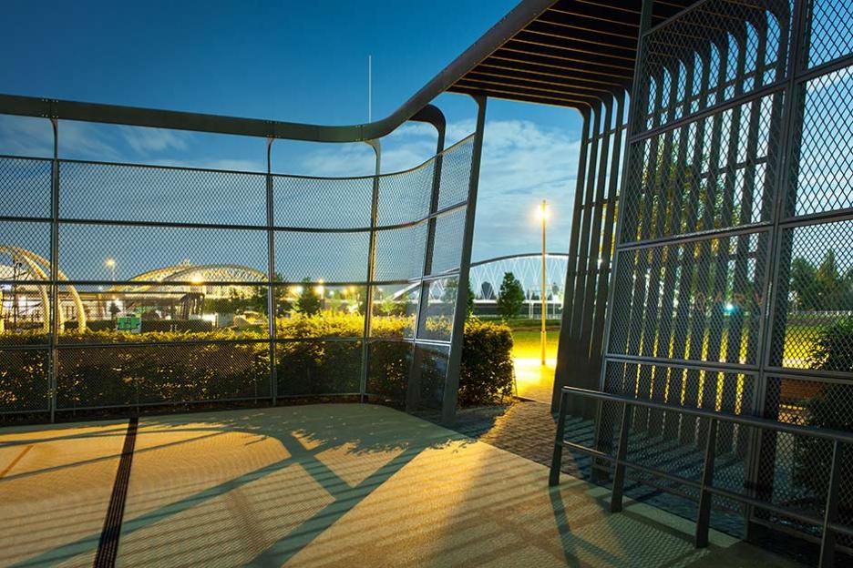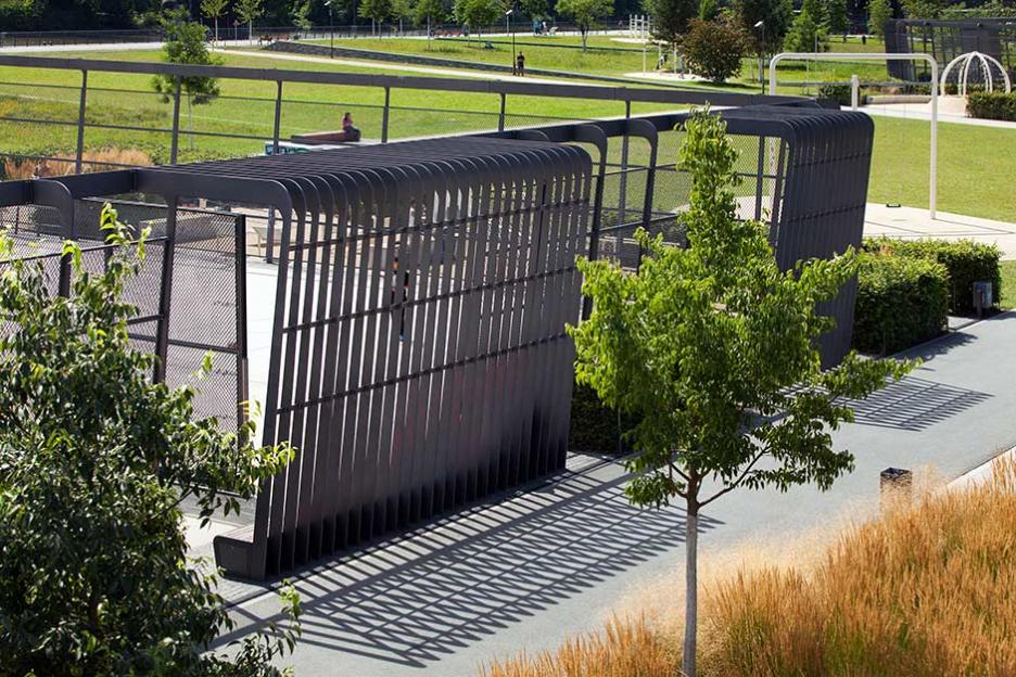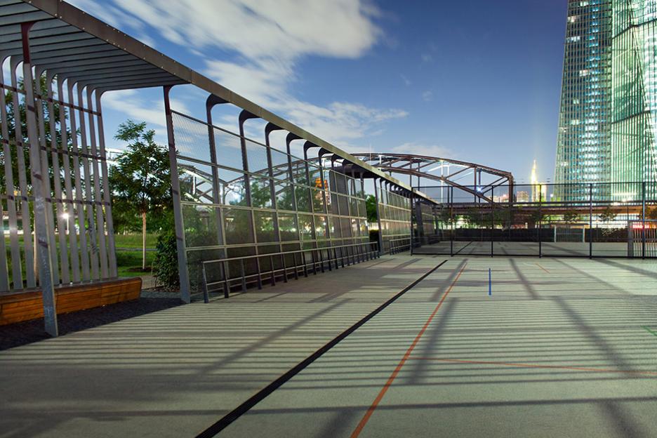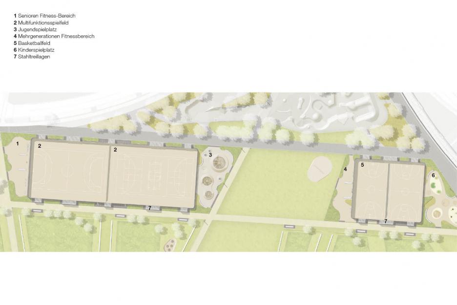 Ein moderner Sport- und Spielpark. Strukturell klar, von cooler Ästhetik und atmosphärisch spannungsvoll.