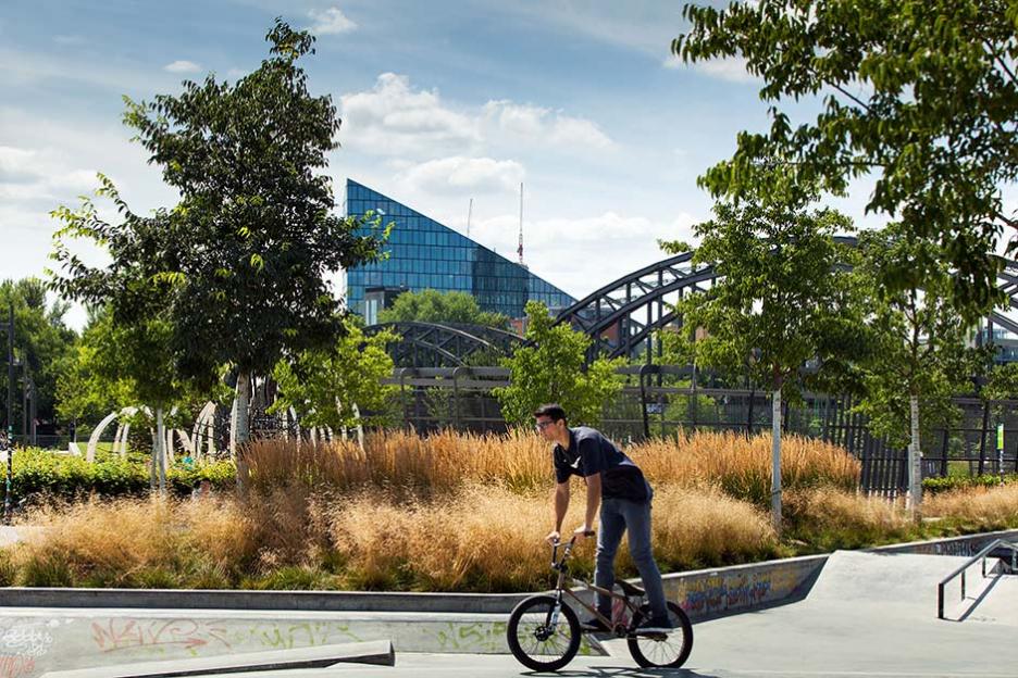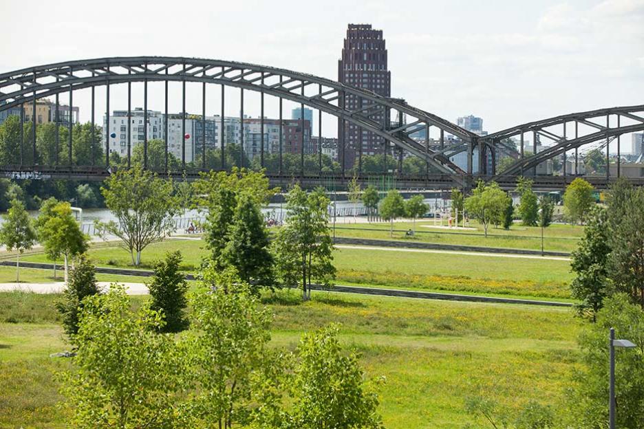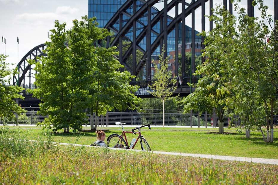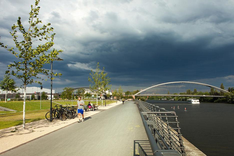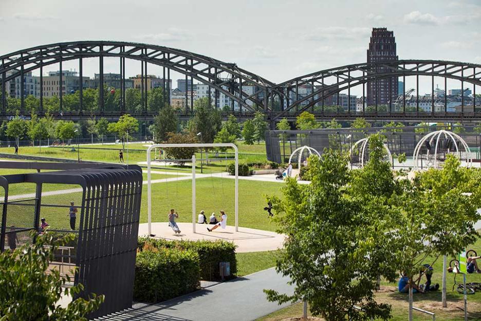 Der Hafenpark im Frankfurter Osten bildet den Abschluss der Grün- und Flaniermeile des Mainufers und den Anschluss an den Grüngürtel. Für die Stadt Frankfurt stellt er den Volkspark des 21. Jahrhundert dar.