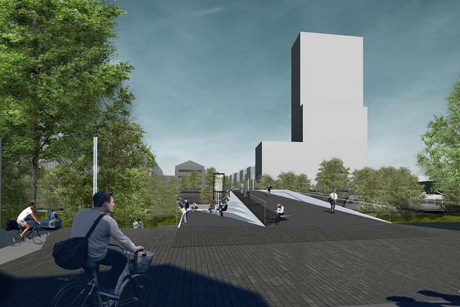 Das neue Promenadendeck ist zugleich horizontale Landmarke, elegantes Brückenbauwerk, effizienter Knotenpunkt und moderne Interpretation der klassischen Promenade. Es wird so zum Raum des Aufenthalts und der Begegnung in der neuen ICE-City.