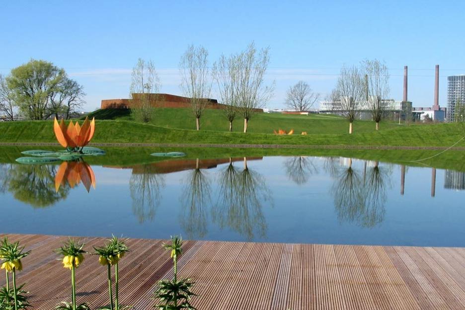 Expressiv gestaffelte Geländekörper bilden eine Landschaft der "Bewegung", die einen künstlichen See umgibt. Der Allerpark ist Teil der sogenannten Erlebniswelt Allerpark, einem neuen Stadtteil Wolfsburgs, der mit einem vielfältigen Angebot an Freizeit- und Sportangeboten aufwartet und die Stadt als touristisches Ziel dauerhaft etablieren soll.