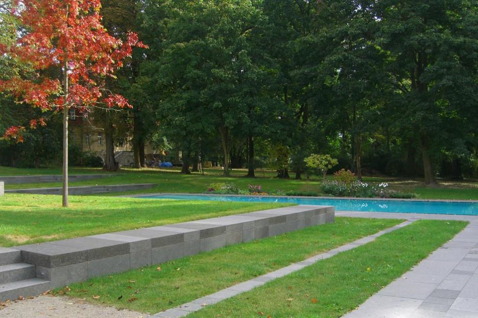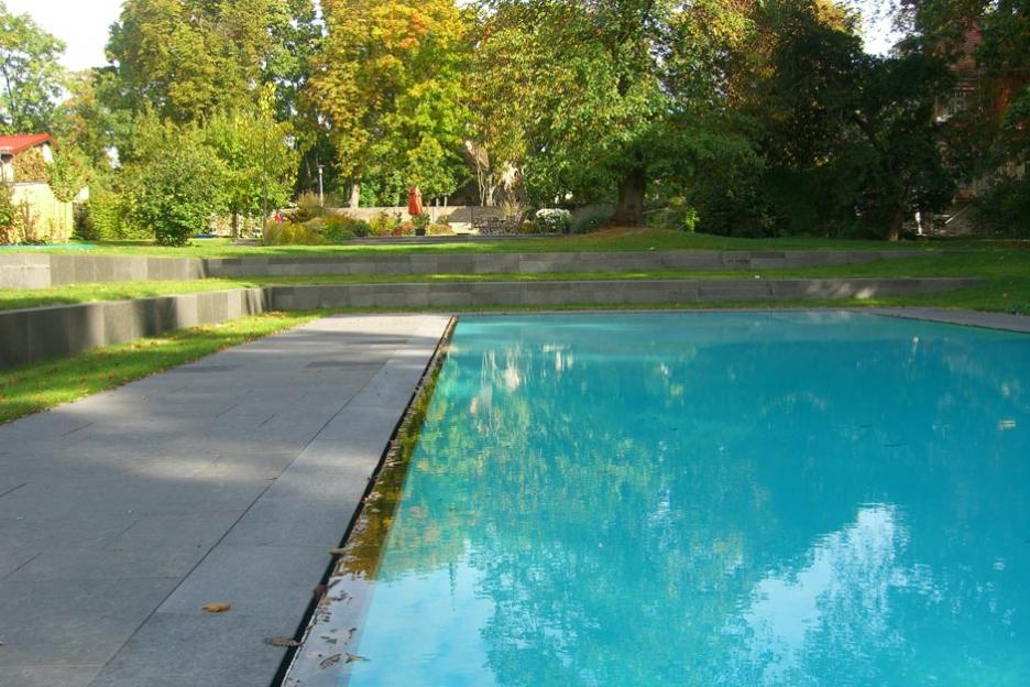 Moderner Garten mit Pool am Rande des historischen Landschaftsgartens Gut Jühnsdorf.