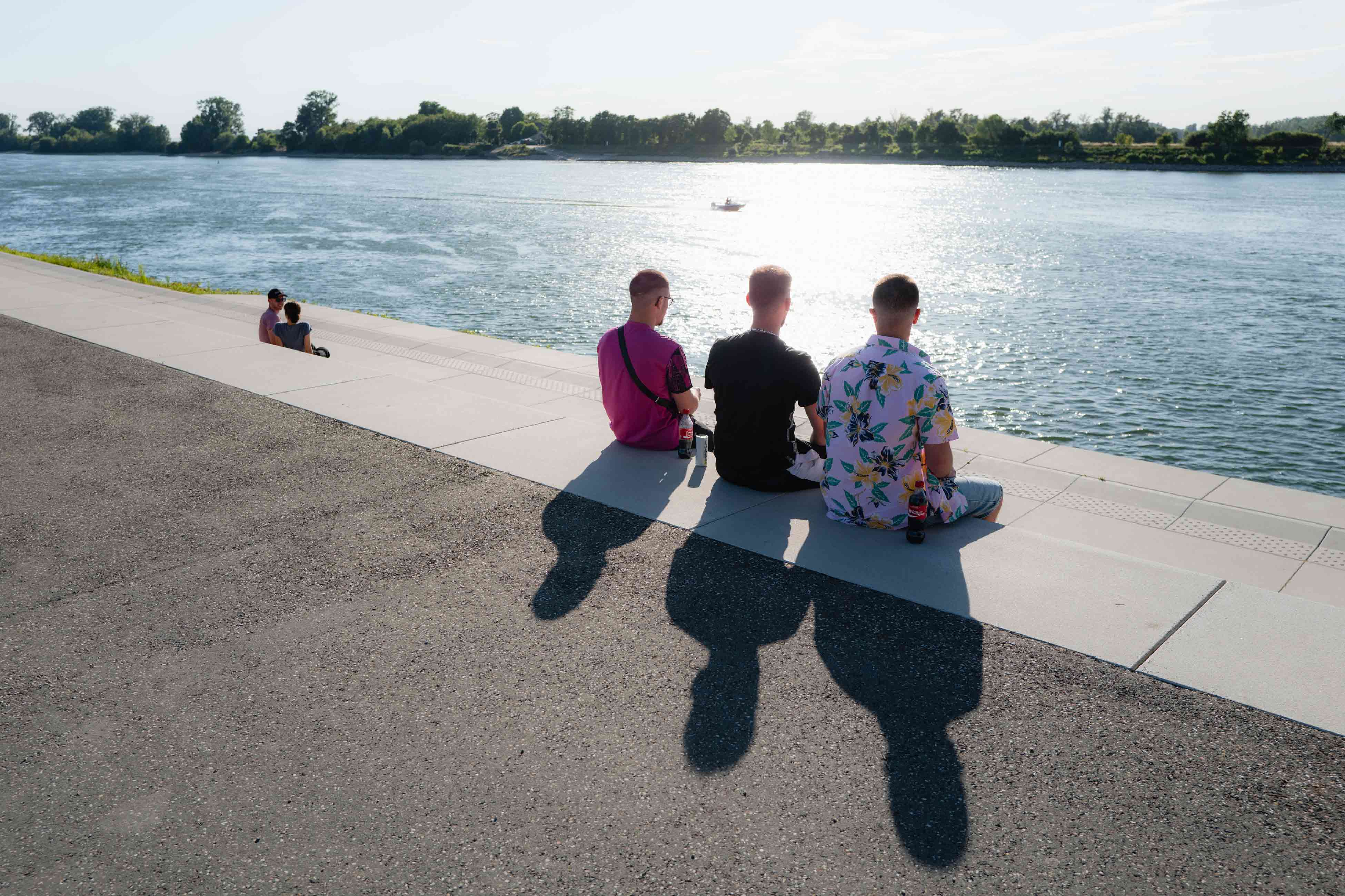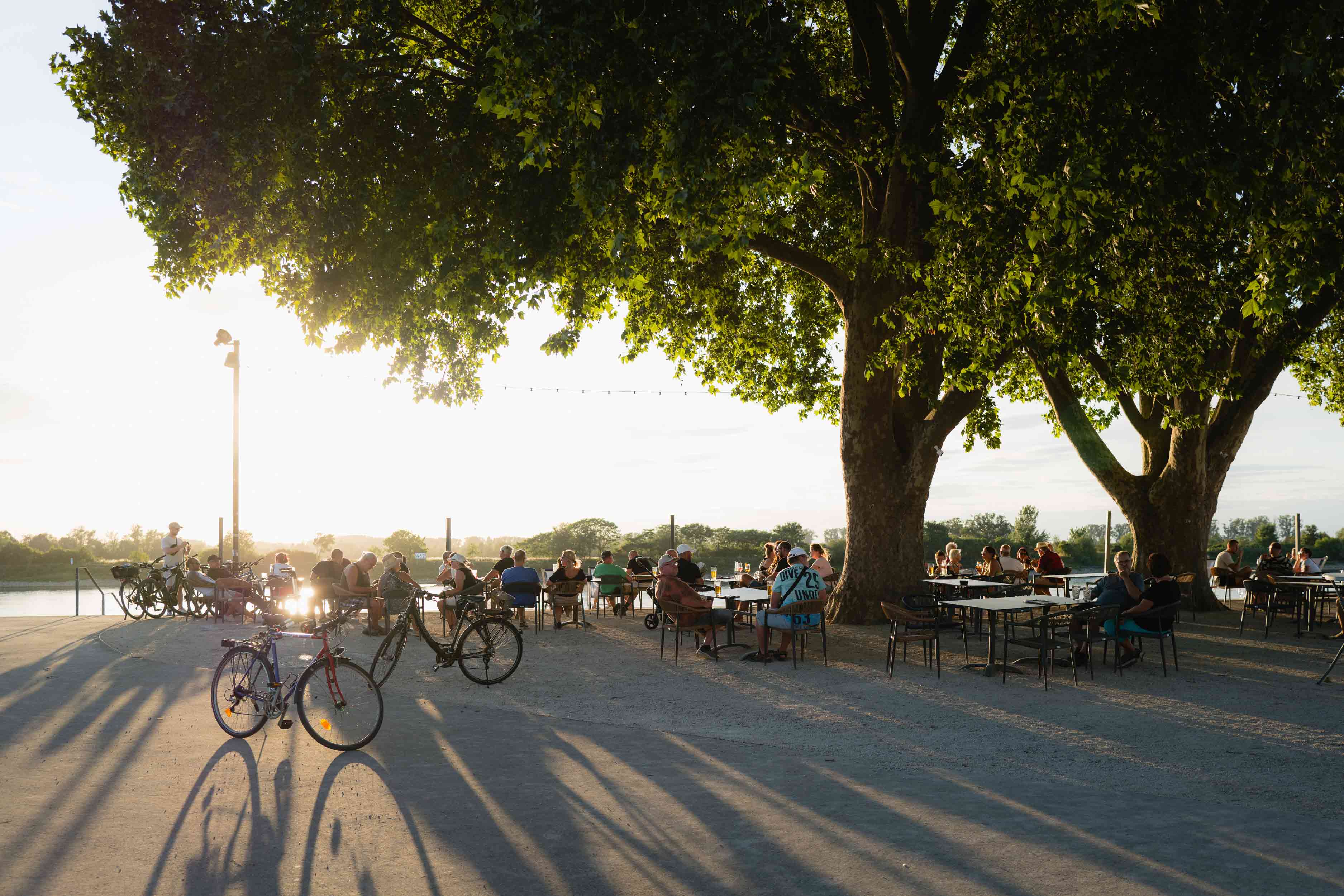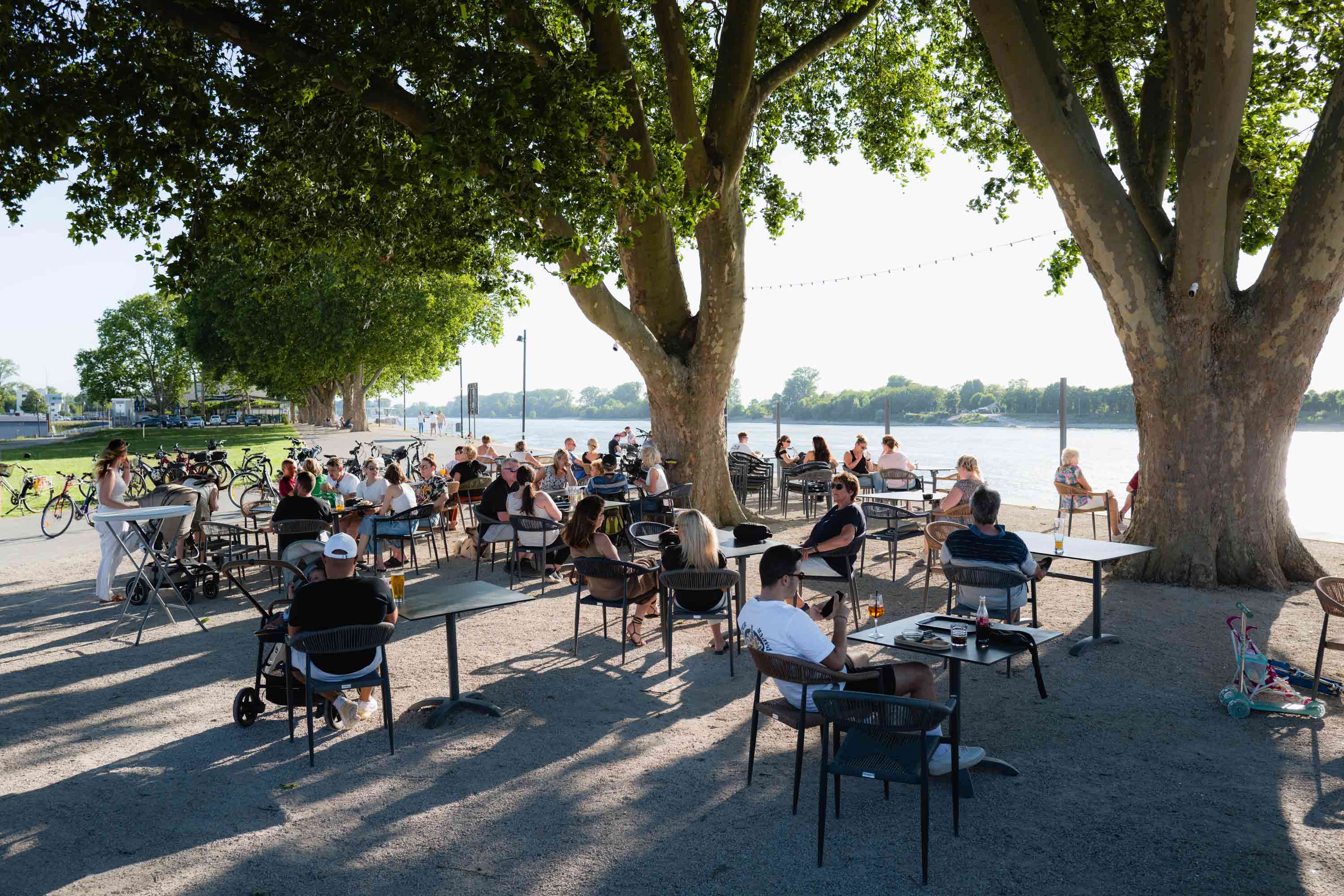 Anstelle ruhenden Verkehrs entsteht eine vielseitig nutzbare Rasen- und Aufenthaltsfläche für Erholung, informelle Nutzung und Veranstaltungen wie das Fischerfest. Eine bugartig ausgeformte Platzsituation mit Sitzstufen zum Rhein ermöglicht unmittelbare Wassernähe und macht die Hafenspitze erstmals als Zielpunkt erfahrbar.