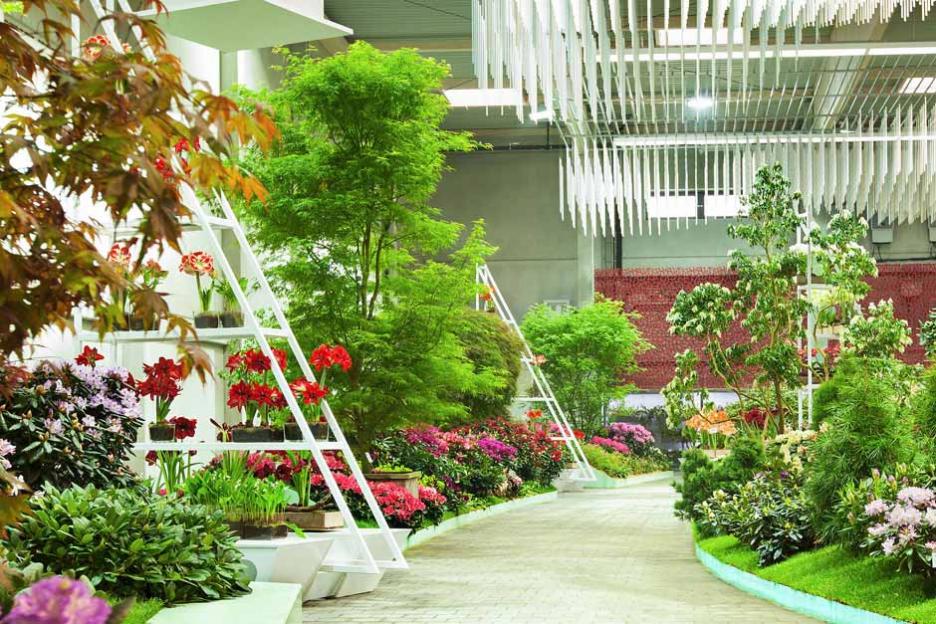 Die Szenographie der Hallenschau versetzt uns an einen abenteuerlichen Schauplatz und stellt die Frage: Wie sind unsere Pflanzen zu uns gekommen?