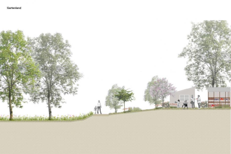 Mit der neuen Stadtkante entstehen neuartige und spezifischen Übergänge zwischen Siedlung und Freiraum.