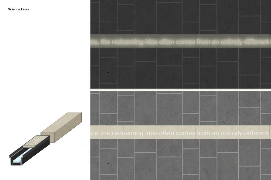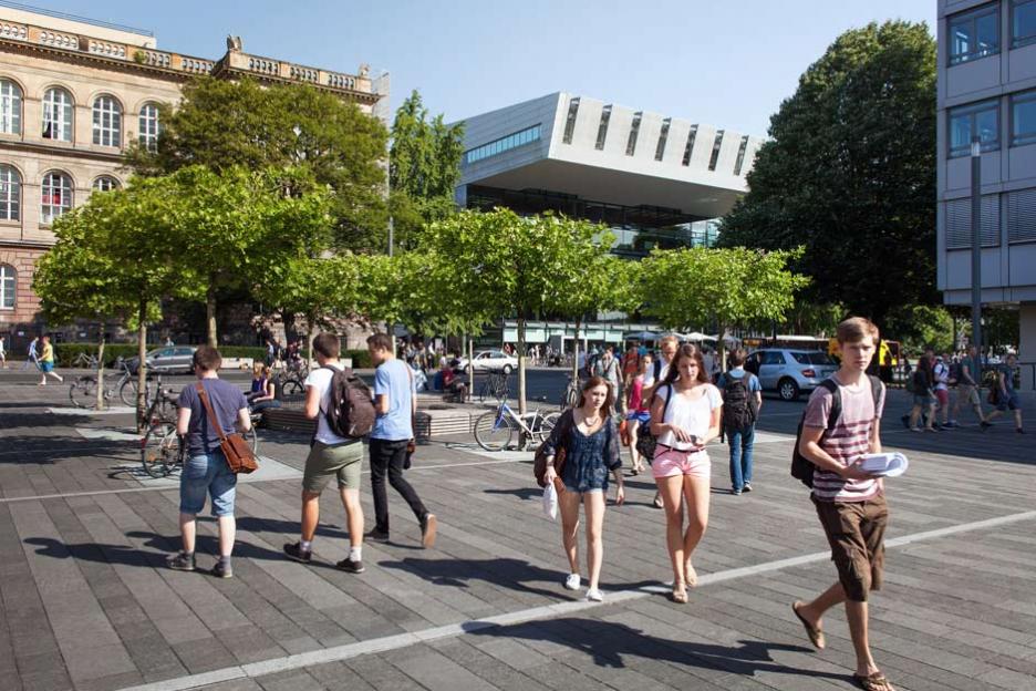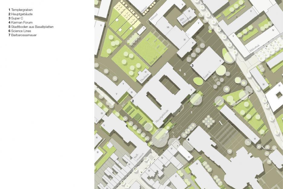 Der neue Freiraum soll zu einer gemeinschaftlichen Aneignung des Raumes durch alle Nutzer führen. Gestalterisch formuliert und zusammengehalten wird der zentrale Campus durch einen markanten Stadtboden aus Basaltplatten, gegliedert von feinen, hellen Linien in der Ausrichtung des Hauptgebäudes und der Achse des Templergrabens. Diese „Science Lines“ tragen Zitate und Formeln aus der fast 150-jährigen Geschichte der Hochschule.