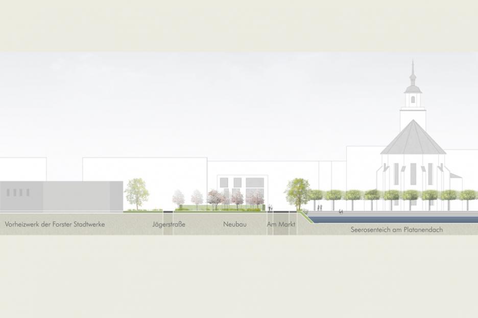 Ein durch Rückbau entstandener Leerraum im historischen Zentrum von Forst bedarf einer neuen Definition. Der Freiraum muss an diesem noch unbestimmten Ort dauerhaft überzeugen und diese erzwungene Situation offensiv als Stärke interpretieren.