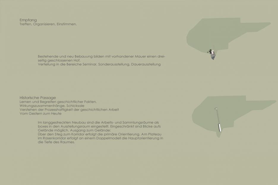 Der Wettbewerb zielte auf einen Vorschlag für ein neues Dokumentationszentrum und auf Ideen zum landschaftsarchitektonischen Umgang mit dem Gedenkstättengelände selbst.