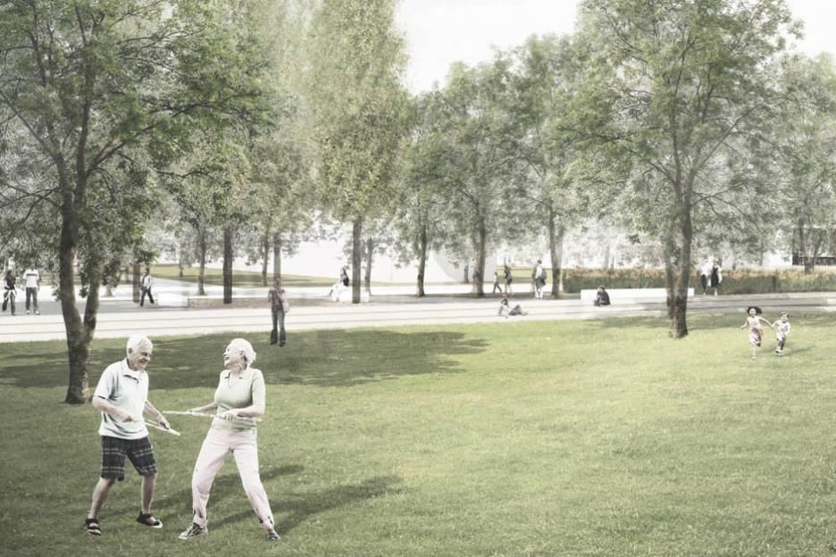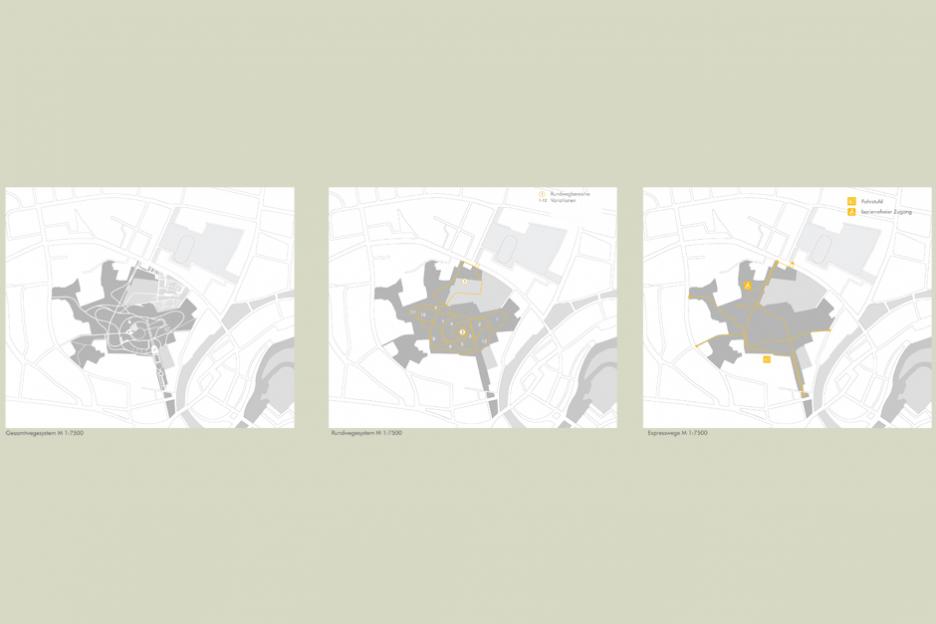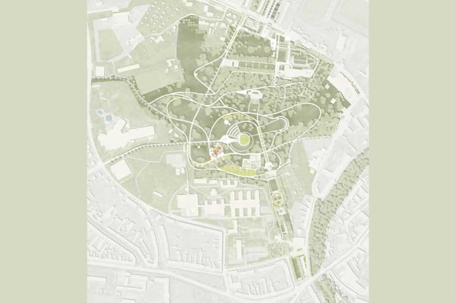 Die Erneuerung des Marienbergs steht im Zeichen der Verflechtung der umgebenden Stadtteile. Dies geschieht durch neue Verknüpfungen und Straffungen des Wegesystems, die Wiederherstellung der Blickbeziehungen und die Schaffung einer übergreifenden gestalterischen Integrität des Parks. Er wird zur verbindenden Mitte.