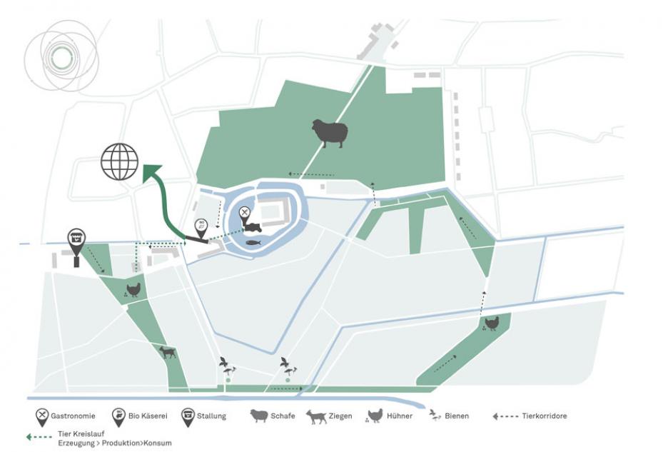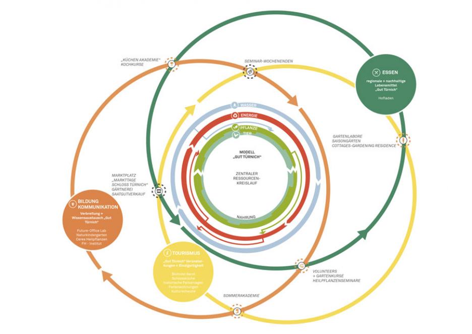 Der Masterplan für das Landschafts-Projekt Türnich schafft auf der Grundlage des denkmalgeschützten Schlossensembles und der uralten Kulturlandschaft entlang der Erft die Rahmenbedingungen für eine Landwirtschaft der Zukunft. Stoffwandlungen und Energieströme sind zu ineinander greifenden Kreislaufsystemen verflochten.