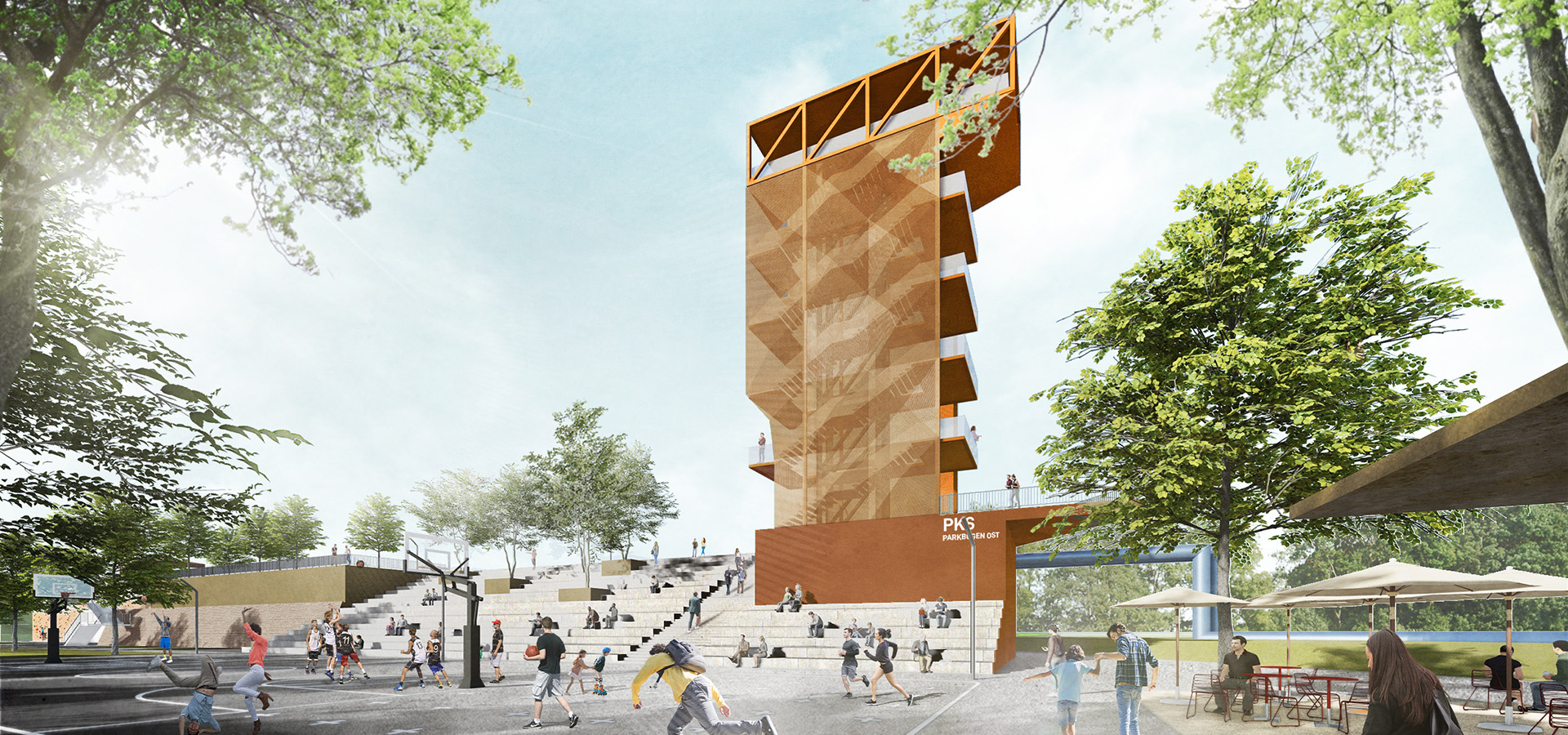 Der attraktive Höhenpark mit seiner vielschichtigen Gestaltung ist für die Entwicklung des Leipziger Ostens sehr prägend. Das grüne Aktivband ist ein starker Impulsgeber für die geplante Aufwertung des gesamten Freiraumsystem. Die 1,5km lange Hochpromenade auf dem Damm einer stillgelegten Bahnstrecke erschließt dabei einen abwechslungsreichen Reigen verschiedener Parkangebote auf und vor dem Damm.